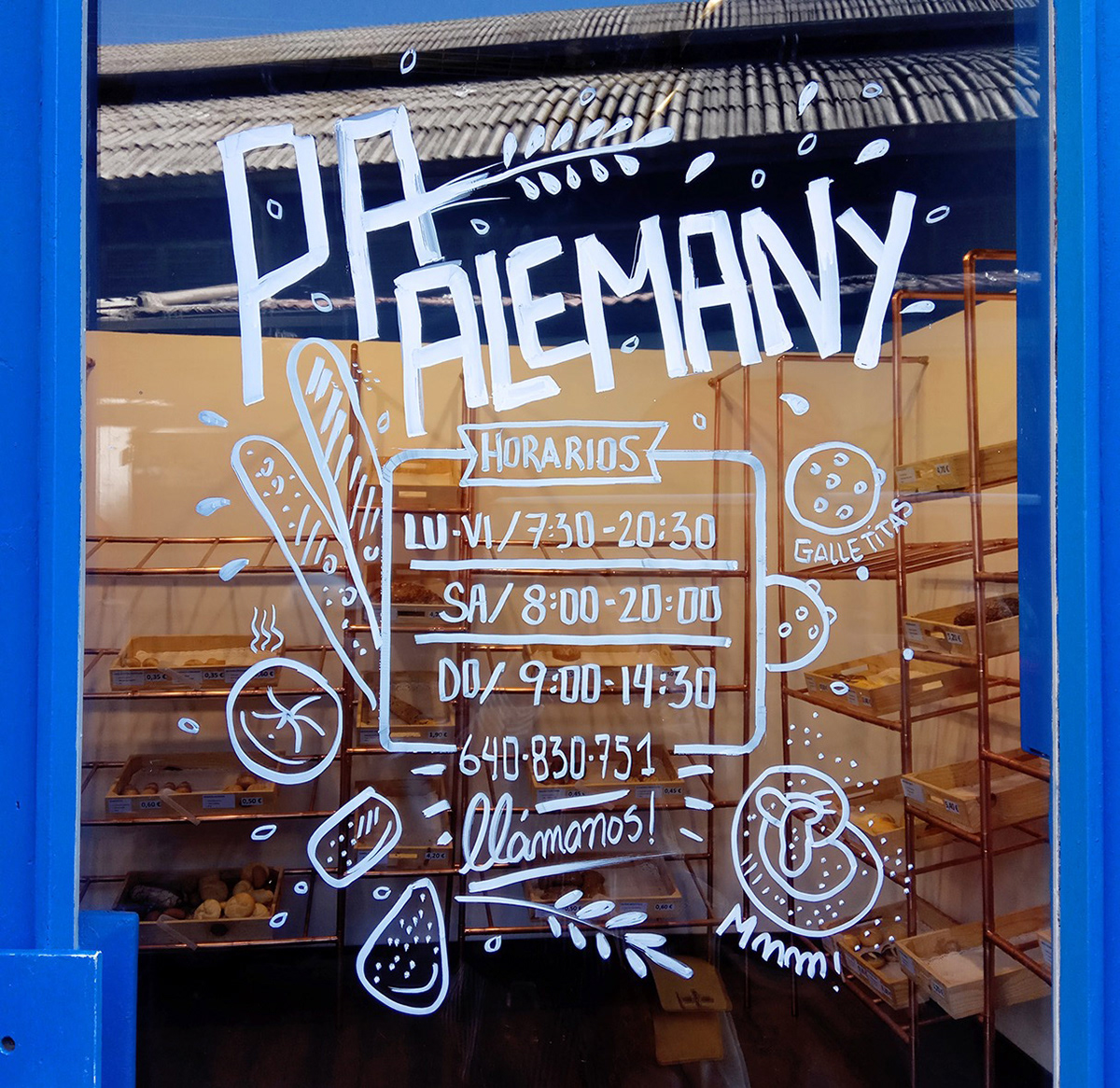 ILLUSTRATED WINDOW FOR BAKERY IN GRACIA / BARCELONA SPAIN 2017